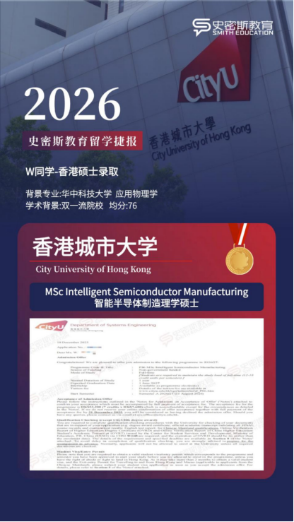 香港城市大学 智能半导体制造理学硕士